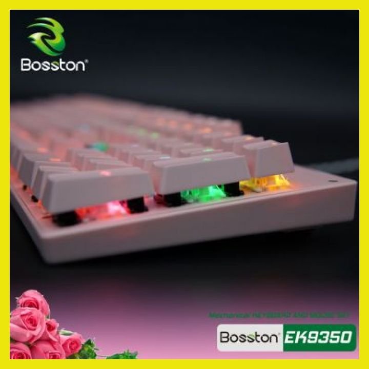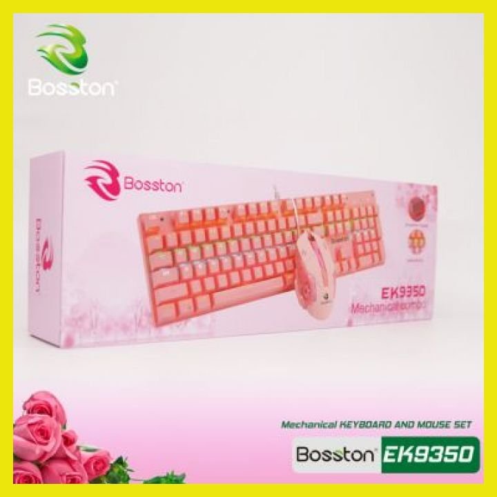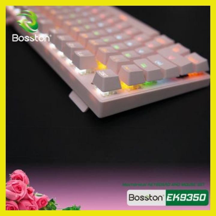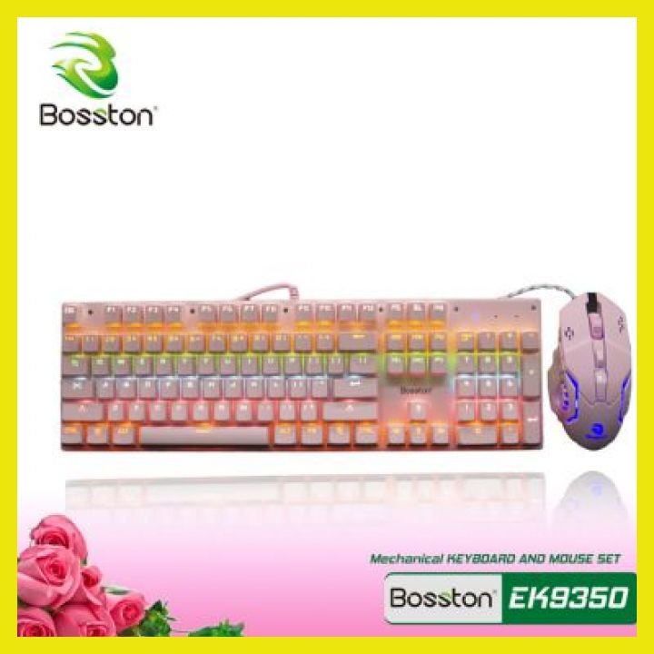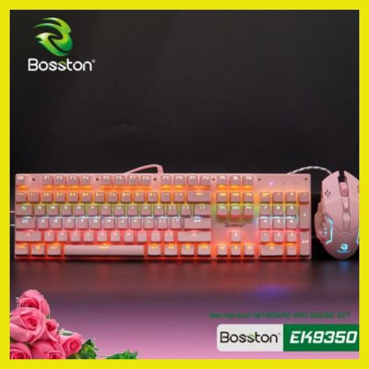 ⌨Bàn Phím Chơi Game Cơ Bosston EK9350 Bàn Phím Cơ Hồng Phát Sáng Có Thể Điều Chỉnh LED, Bàn Phím Máy Tính Có Dây Chơi Game và Chuột Cho Windows PC Gamer ⌨