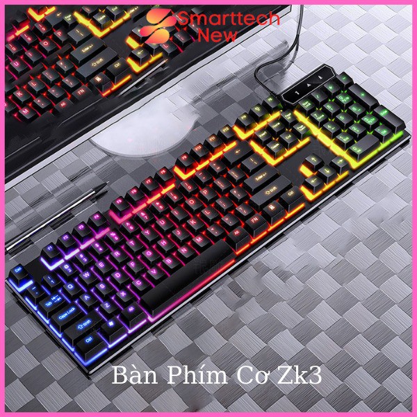 - Bàn phím cơ ZK3 được trang bị với hệ thống LED có thể thay đổi hiệu ứng màu sắc. Giúp người dùng có thể nhìn được rõ chữ hơn khi sử dụng bàn phím vào ban đêm hay khi thiếu ánh sáng. Độ sáng vừa phải, dịu mắt làm đẹp thêm cho không gian của bạn.
