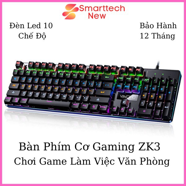 - Bàn Phím Cơ Gaming Phím Blue Switch ZK3 với các keycap được làm từ nhựa cao cấp đảm bảo tuổi thọ lâu dài cho thiết bị, không bị mờ phím sau thời gian dài.