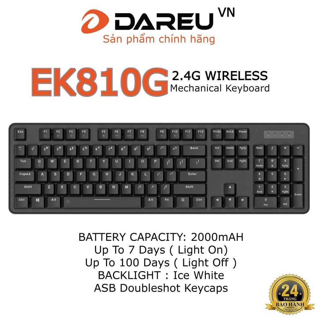 Bàn phím cơ không dây DAREU EK810G BLACK 104-KEYS (Blue/ Brown/ Red D switch) – ICE WHITE Backlight