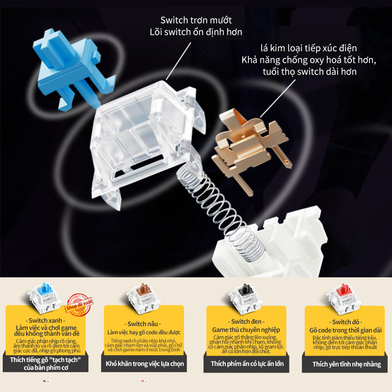 | màu sắc | Bàn phím RGB màu đe, Kánh hỗn hợp đen xám, Đen + xám (switch đỏ, ánh hỗn-Trắng+xanh, K550 Đen Huyền Bí, Trắng+đenSwitch xanh, Đen + trắngSwitch xa, Đen + đỏ (switch đỏ), Trục đỏ đen trắng 87, Trục đen đỏ 87 phím, 100 phím trong suốt |