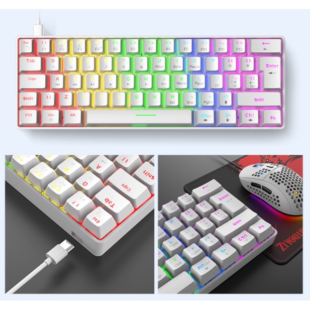 Bàn Phím Cơ Wolf T60 62 phím có dây led RGB dành cho PC, laptop
