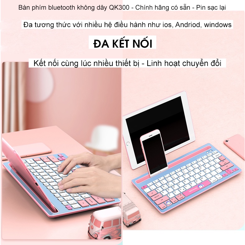 Bàn phím, bàn phím không dây | QK300 kết nối bluetooth như IPhone, IPad, Android, Tablet, Laptop, Macbook