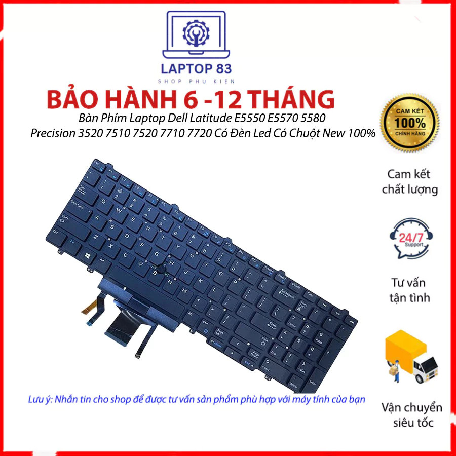 Bàn Phím Laptop Dell Latitude E5550 E5570 5580 Precision 3520 7510 7520 7710 7720 Có Đèn Led Có Chuột New 100%