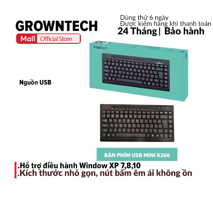 Bàn phím mini USB K260 thiết kế nhỏ gọn, tiện dụng, sử dụng cho điện thoại, máy tính bảng, PC GrownTech