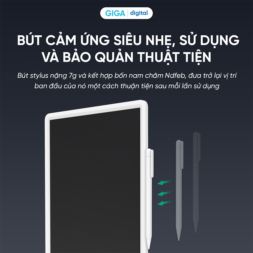 Đi kèm với bảng vẽ điện tử là bút stylus siêu nhẹ với trọng lượng chỉ 7g và thiết kế độc đáo, dễ dàng sử dụng. Đầu bút mềm mịn, mặt tiếp xúc của bảng trơn bóng tạo ra chữ viết mượt mà, trẻ em cũng có thể sử dụng nó một cách dễ dàng. Bút có kích thước vừa vặn tay cầm và được lưu trữ gọn gàng bên cạnh bảng, tránh bị lạc mất.
