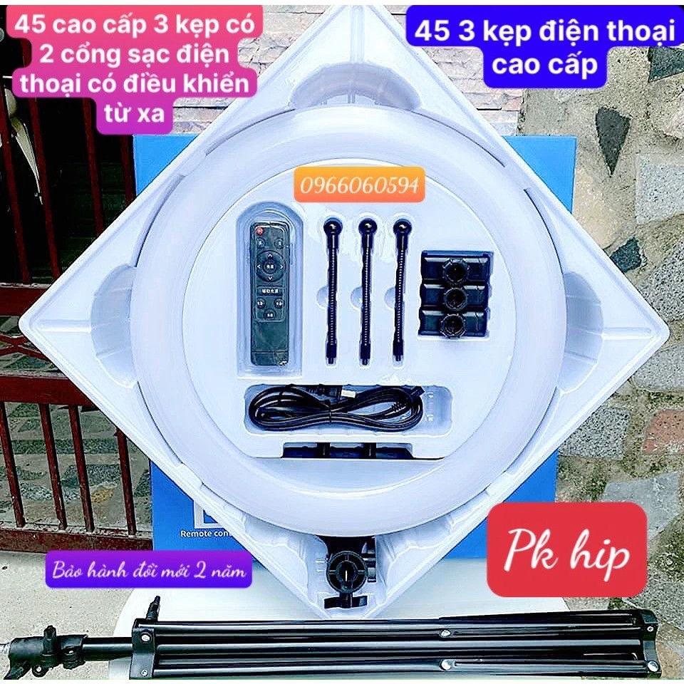 ** Bộ Sản Phẩm bao gồm : 1 Đèn LiveStream 45cm + 1 chân đế + 3 kẹp điện thoại + 1 điều khiển từ xa.