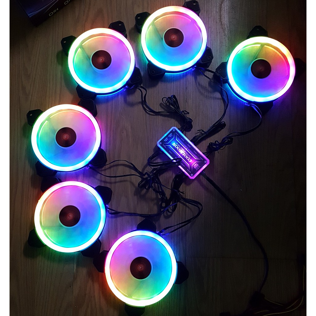 Bộ 5 Quạt tản nhiệt Fan Coolmoon v2 6 pin RGB và bộ HUB điều khiển MKStore