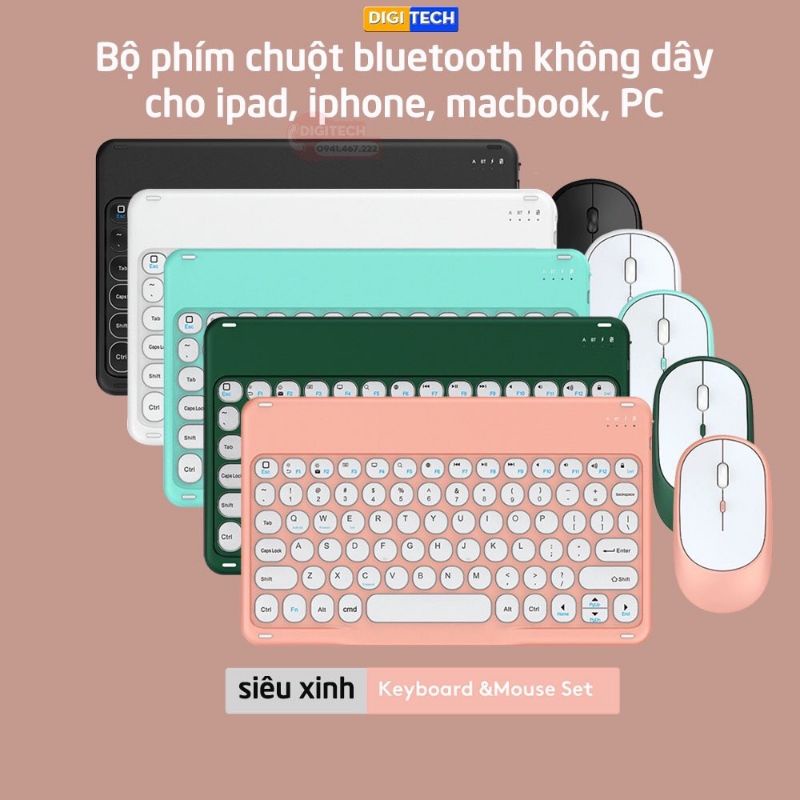 BỘ COMBO BÀN PHÍM VÀ CHUỘT KHÔNG DÂY siêu dễ thương, nhiều màu sắc tương thích với các hệ điều hành khác nhau và kết nối bluetooth không dây 10m kết nối ổn định, rất tiện lợi để sử dụng. Thiết kế nhỏ gọn, thiết kế phím cổ điển và phong cách sành điệu giúp bạn thêm sành điệu và độc đáo, khiến góc học tập và làm việc của bạn phong cách hơn.