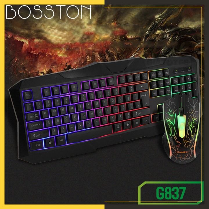 Bộ Bàn Phím Chuột Có Dây Bosston 837 Tích Hợp Đèn LED, Combo Bàn phím và chuột bosston