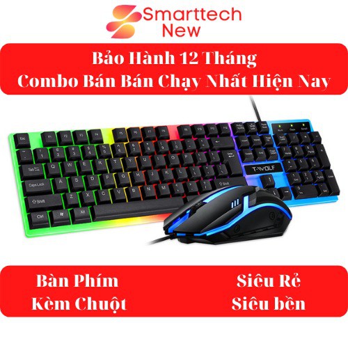 Bộ Bàn Phím Gaming Có Dây Kèm Chuột Máy Tính Gaming T-WOLF - Bàn Phím Giả Cơ Có Đèn LED 7 Màu Ấn Tượng