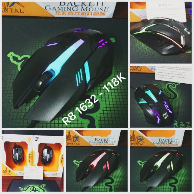 Chuột game LED 7 màu tự động R8 1632 - Giá lẻ: 118K