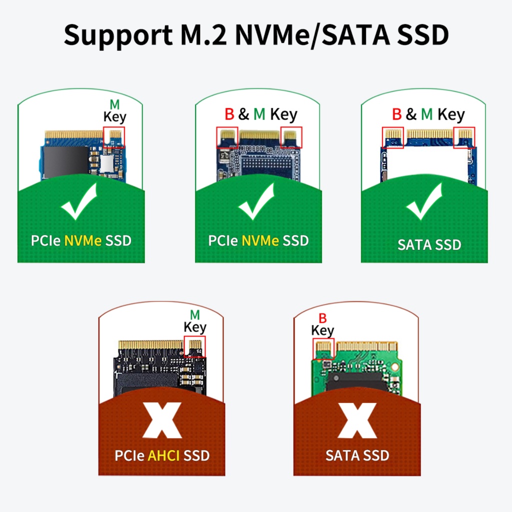 Bộ Chuyển Đổi Thẻ Nhớ SSD M.2 NVME / SATA Sang USB 3.1 Gen2 10 Gbps M Key Và B Cho 2230 2242 2260 2280 22110 SSD