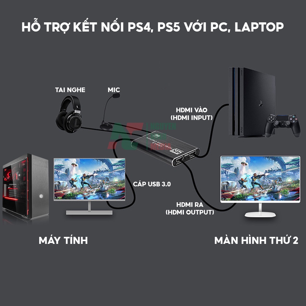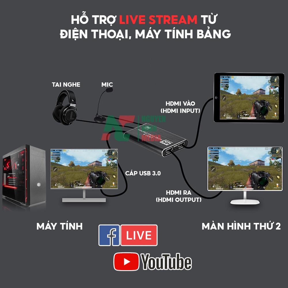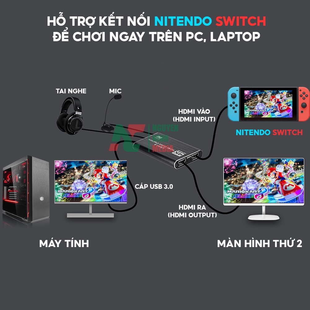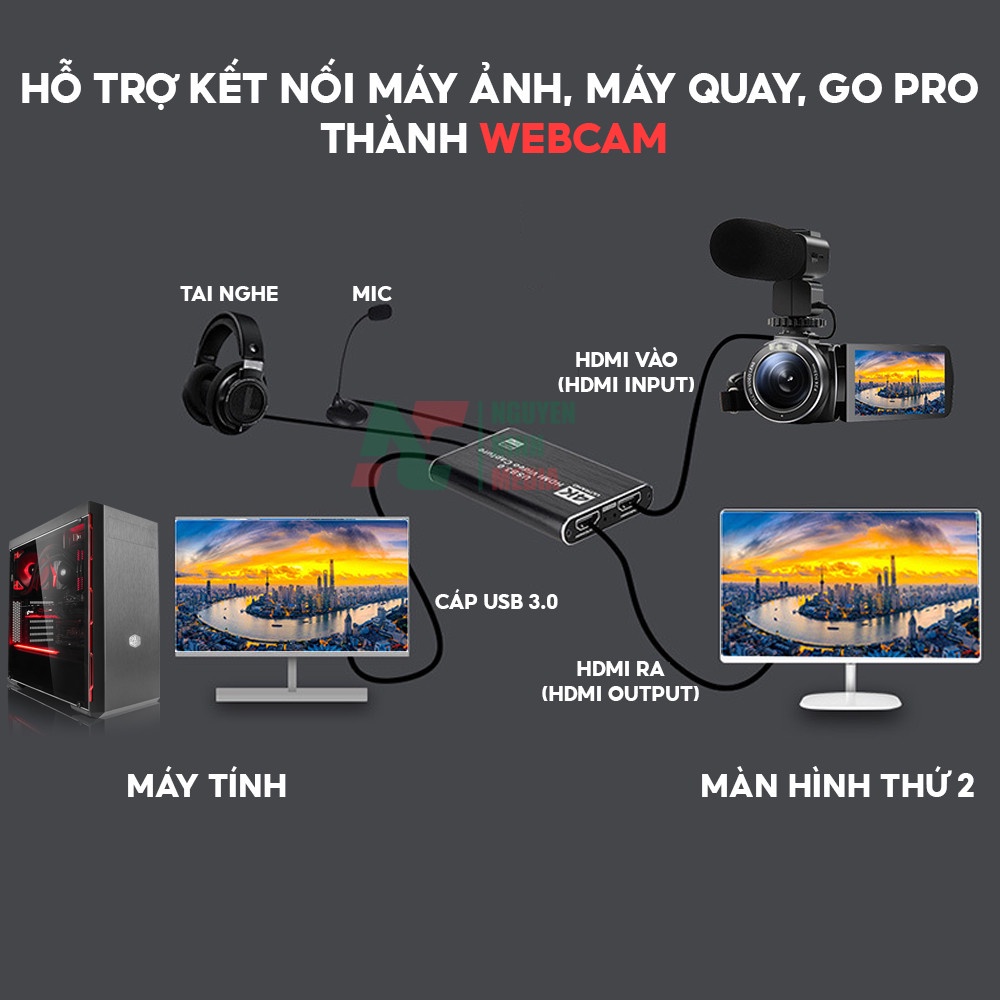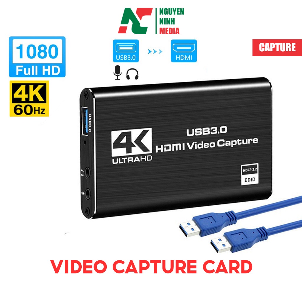 Bộ Chuyển HDMI to USB 3.0 Video Capture Card 1080P 60FPS Tích Hợp Cổng Micro và Cổng Tai Nghe