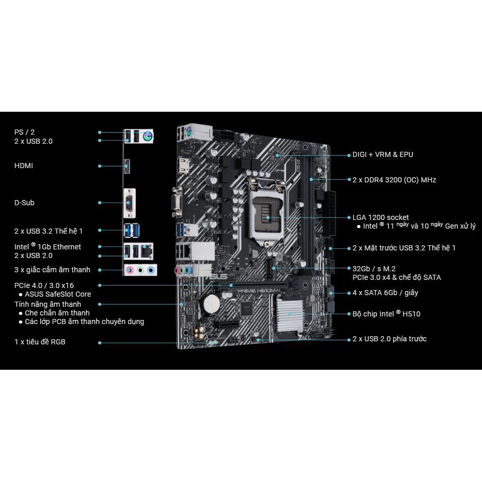 Bo mạch chủ ASUS PRIME H510M-K - Bảo hành chính hãng 36 Tháng