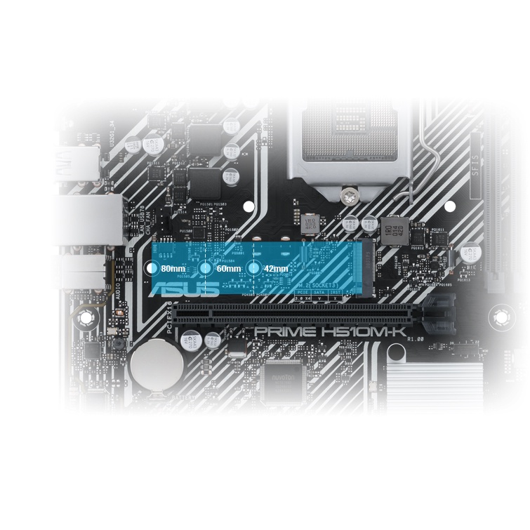 Supports 1 x M.2 slot and 4 x SATA 6Gb/s ports Intel® H510 Chipset M.2 slot (Key M), type 2242/2260/2280 (supports PCIe 3.0 x4 & SATA modes) 4 x SATA 6Gb/s ports