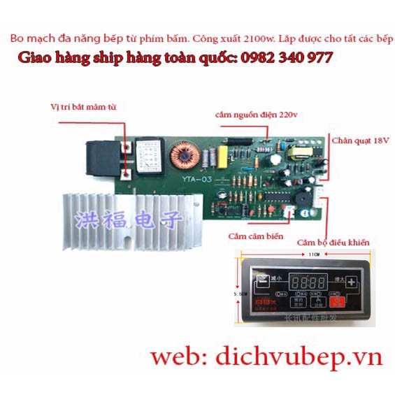 Bo mạch đa năng bếp từ phím bấm thay thế cho các hãng