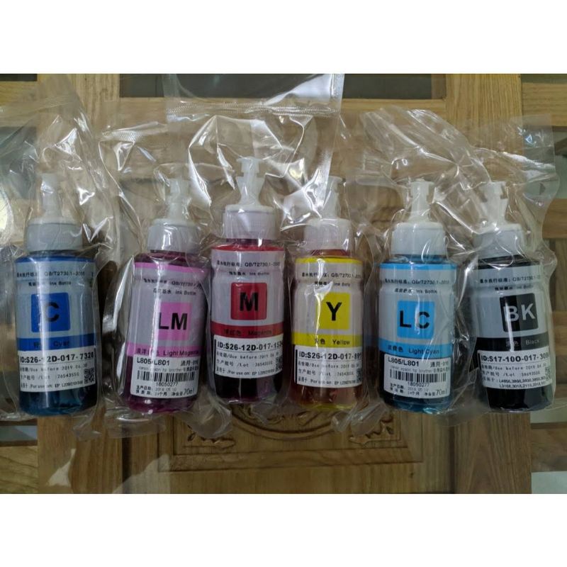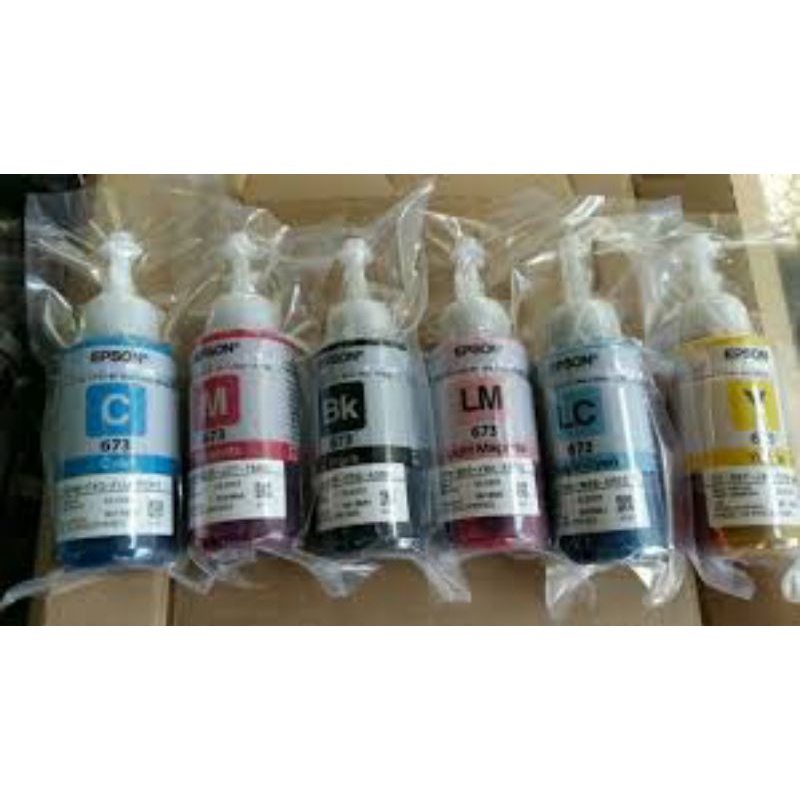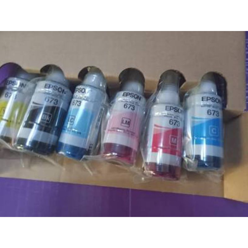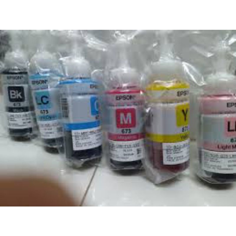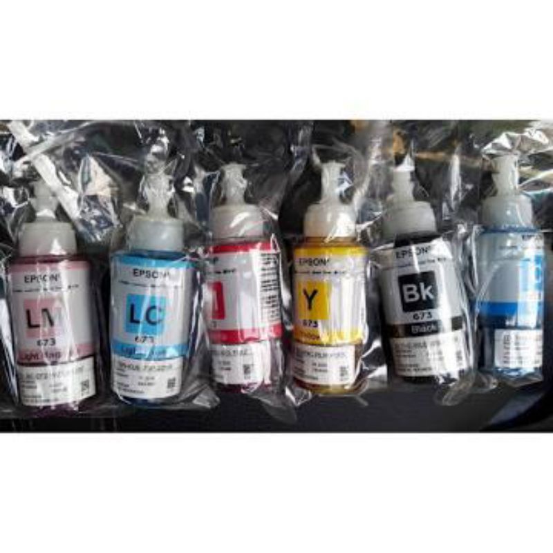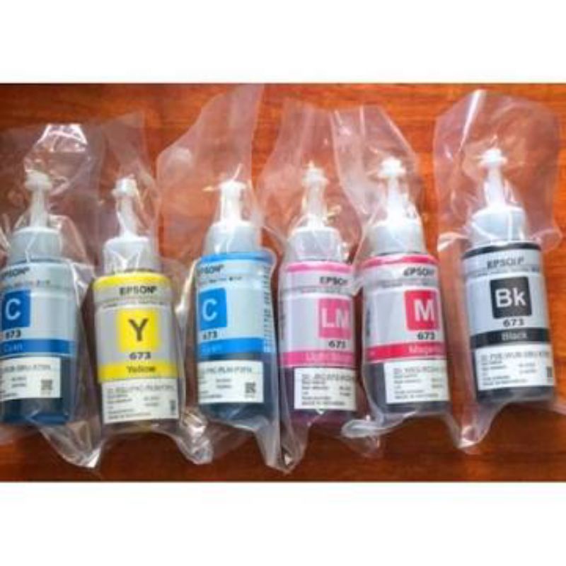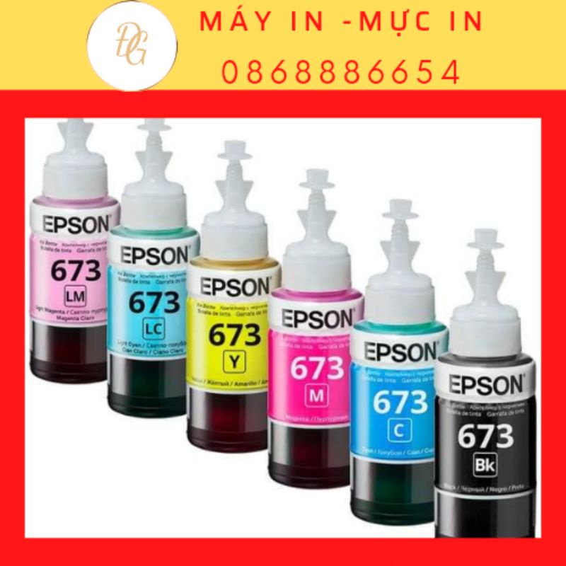 ☘️Mực in Epson T673 Epson L800/L805/ L1800/L850 mã 673 loại 70ml/ 1 màu ép chân không loại mực epson 673 loai mực epson 6 màu dung tích 70ml/ loại hàng NK nên không gồm cái vỏ giấy, made in indonesia và made in philipine tuỳ đợt nhập máy về date luôn mới từ 2021-2023 hàng nhập khẩu ✅ Sử dụng cho các dòng máy in sau: - Máy in phun Epson L800 - Máy in phun Epson L805 - Máy in phun Epson L810 - Máy in phun Epson L850 - Máy in phun Epson L1800 - Máy in phun Epson T50 - T60 ☘️ BLACK / T6731 ☘️ CYAN / T6732 ☘️ MAGENTA / T6733 ☘️ YELLOW / T6734 ☘️ LIGHT CYAN / T6735 ☘️ LIGHT MAGENTA / T6736