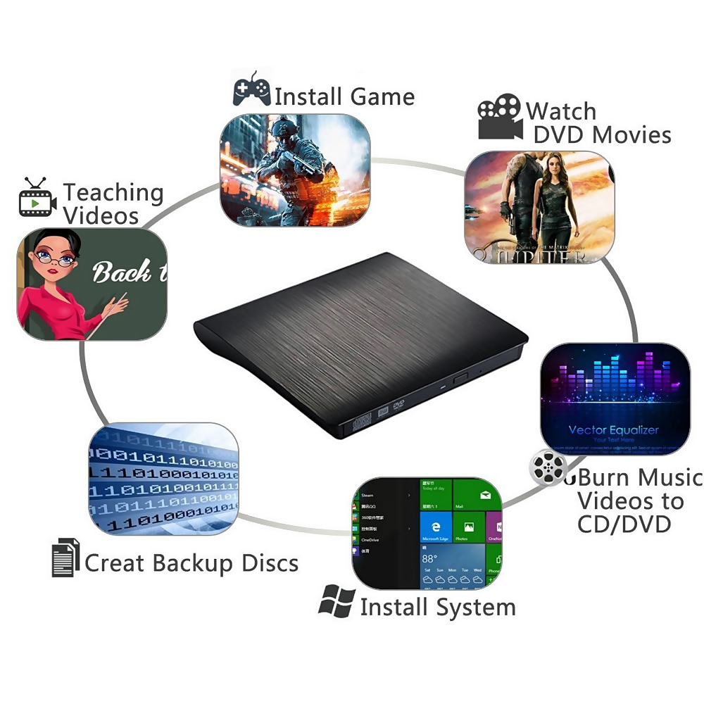 Hỗ trợ định dạng CD: DVD-ROM, DVD-R, DVD + R, DVD-RW, DVD-R DL CDA, CD-ROM, CD-R, VCD, SVCD, VCD