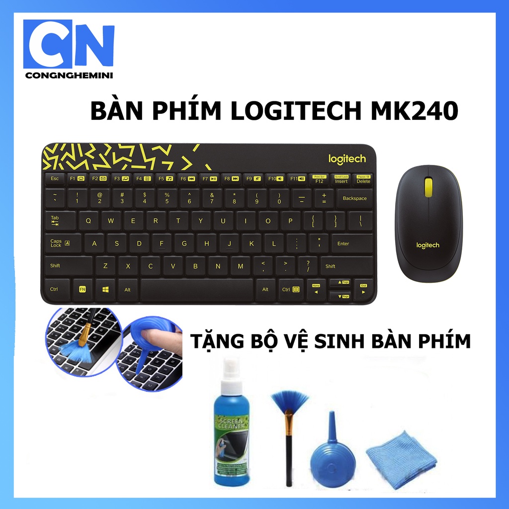 Bộ Phím Chuột Không Dây Logitech Mk240 Nano, Tặng Kèm Bộ Vệ Sinh Bàn Phím