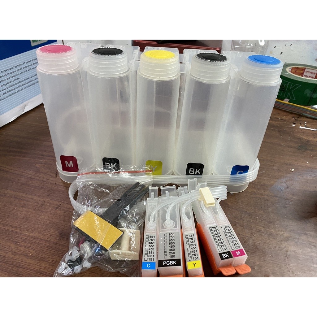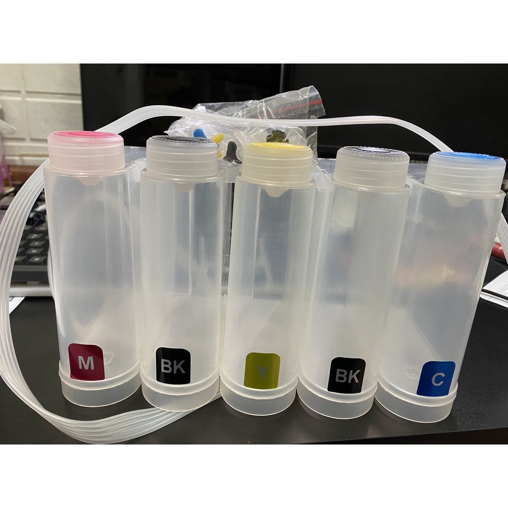 Sản phẩm gồm: 5 BÌNH MỰC MỖI BÌNH 500ML + CHIP NHẬN MỰC VÀ DÂY DẪN MỰC (Chưa có mực)