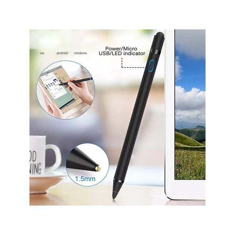 Package Included: 1 * Electronic Stylus 1 * Micro USB Charging Cable Specifications: The 1.5mm fine stylus pen with elastic copper tip ensures more accurate and sensitive working performance, and superior control against the screens. While the sensitive fiber mesh tip protects device from scratches, fingerprints or grease, ideal emergency back up for power off using. Not support straight lines. Description: This active ipad stylus pen is wide using for most capacitive touch screen devices, compatible with iOS devices as well ( for iPad Pro iPad Mini iPad Air iPhone 11/Pro/Pro max for iPhone X / 8/8 Plus / 7/7 Plus / 6s/6s Plus /5/5s/5 SE / 4/4s). Absolutely the best economic replacement for Apple Pencil. Not compatible with Microsoft windows system device.