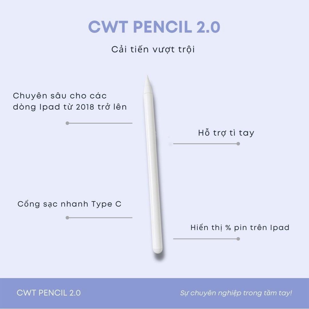 Bút cảm ứng CWT Pencil phiên bản 2.0 cho ipad từ 2018