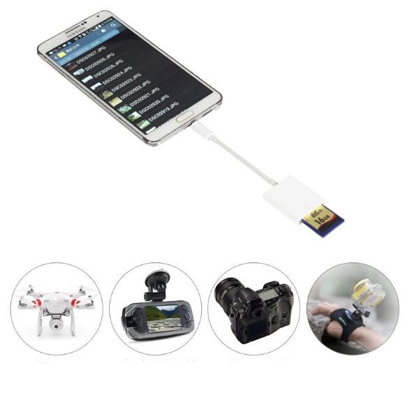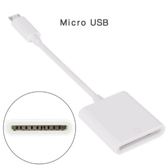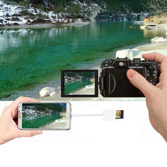 Cáp OTG đọc thẻ nhớ SD cho điện thoại Android Đọc dữ liệu rất nhanh từ thẻ nhớ. Có thể copy ảnh từ thẻ nhớ vào máy tính ngay lập tức. Cắm cáp vào đt và cho thẻ nhớ là ngay lập tức điện thoại đọc được dữ liệu trong thẻ nhớ. Không bị delay hoặc lỗi khi copy ảnh. Lưu ý: trên thị trường hiện có loại cap giống y hệt nhưng khá kén điện thoại.