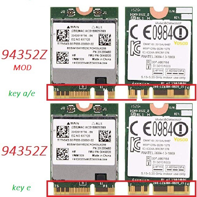 Mã BCM94352Z - MOD là loại card BCM94352Z SHOP TỰ CƯA thêm rãnh để giống hoàn toàn với DW1560 (Order loại này nếu bạn không chắc máy bạn dùng chuẩn nào - Loại này chạy được tất cả các thể loại máy có chuẩn card ngff)