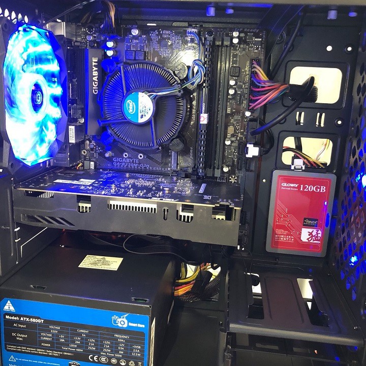 Case máy tính giá rẻ: Ram 4g+CPU i3-2100,cạc rời GTX 650/1g/de5/128 bit,o cưng ssd120gb ,nguồn công suất thực 350w+vỏ mới