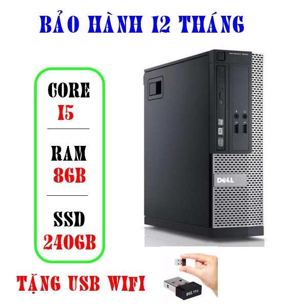 Cây máy tính đồng bộ DELL CPU Core i5 | i3, Ram 8GB, Ổ cứng SSD 240GB, Tặng usb Wifi