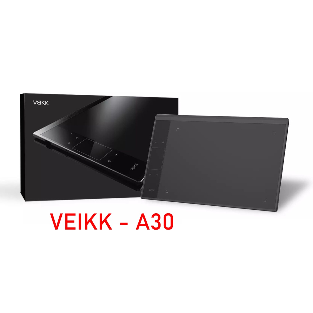 Bảng vẽ Veikk A30 Touch, vùng hoạt động 10 x 6in, độ phân giải 5080lpi, độ phản hồi 250pps, độ cảm ứng 10mm, 4 phím tắt tùy biến + thanh cảm ứng Touch, bút cảm ứng P001 không pin 8192 mức lực nhấn, , kết nối USB-C.