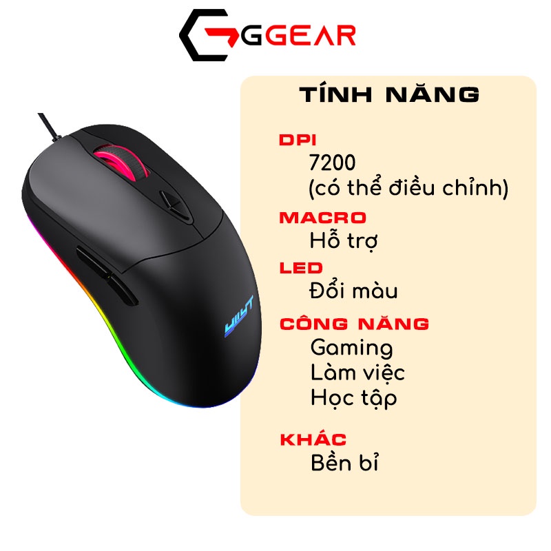 Chuột gaming led Ggear MG885 chuột máy tính có dây led rgb 7200 dpi Hỗ trợ Macro cho game thủ văn phòng học tập làm việc