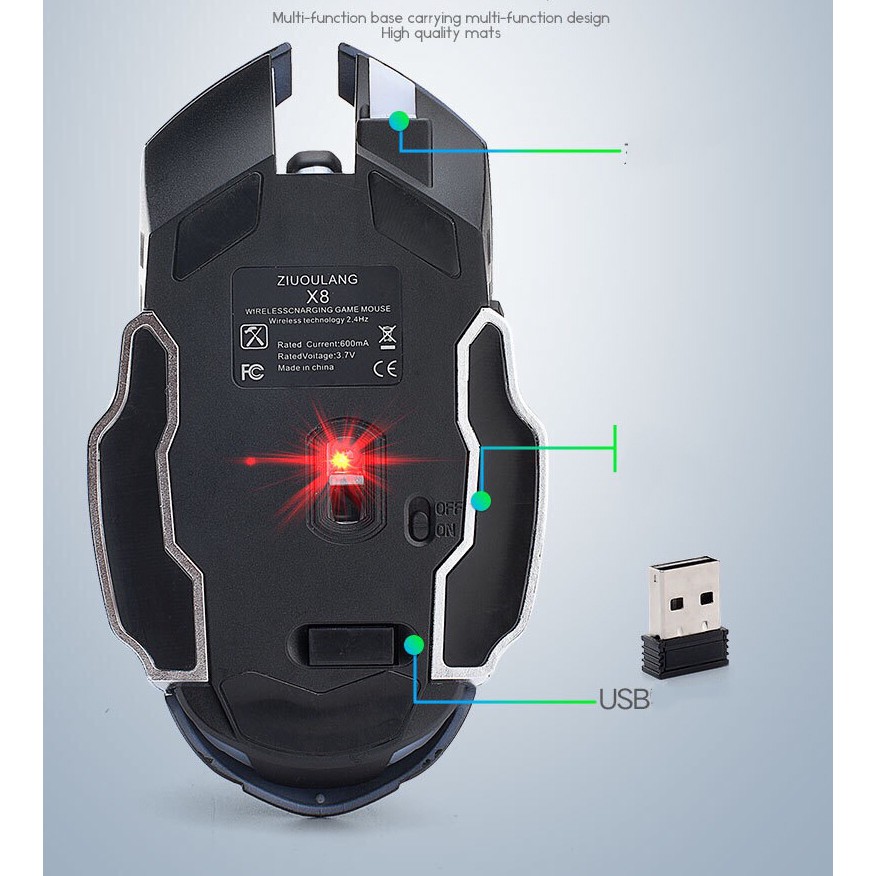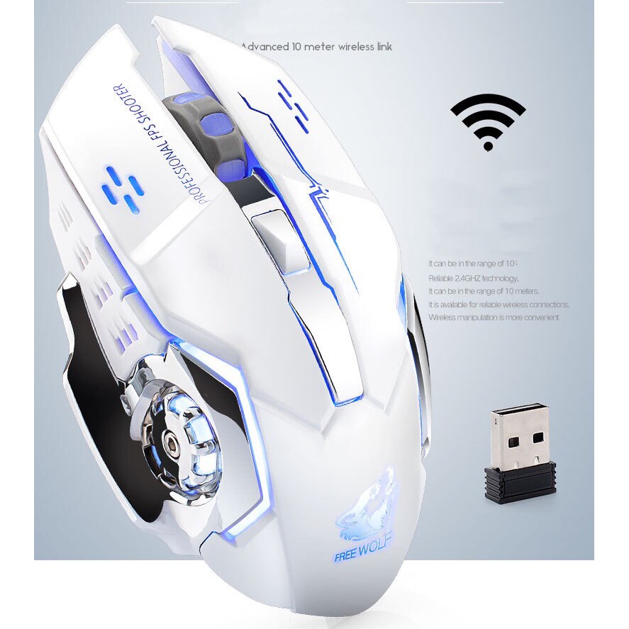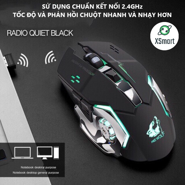 Chuột không dây chuyên GAME Wolf X8 PRO NÂNG CẤP Wireless 2.4GHz SIÊU NGẦU, Tự động đổi màu sắc