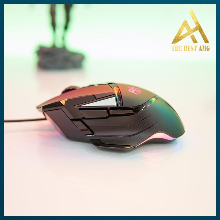 Trang bị LED RGB với nhiều chế độ khác nhau được tích hợp trên Logo và mặt dưới của chuột có thể thay đổi khi anh em tùy chỉnh mức DPI. Trang bị 7 Nút bấm gồm : 2 Nút Back – Forward , 2 Nút Tăng Giảm DPI ( Mức DPI từ 400 – 4000 ) , 2 Nút Click , 1 Nút Thay Đổi LED.