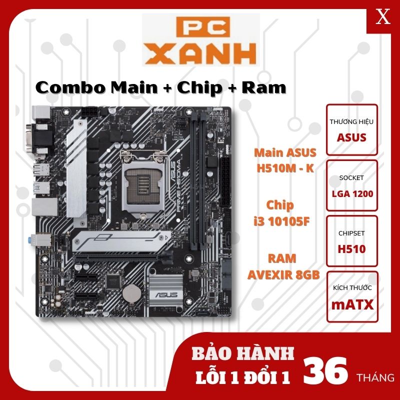 Combo Main + Chip + Ram(Asus H510M-K + i3 10105F + Avexir or Lexar 8gb 2666)