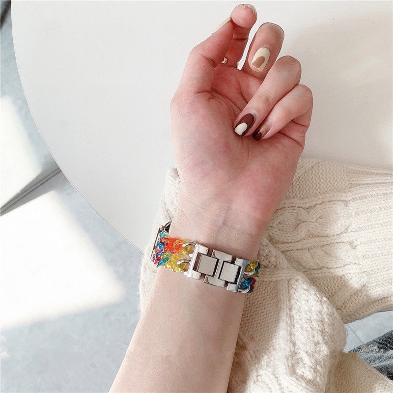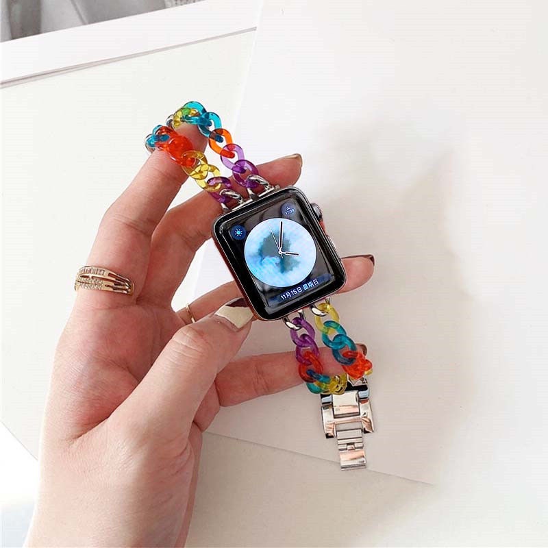 Dây đeo đồng hồ màu cầu vồng thích hợp cho Apple Watch Band Series 6 SE 5 4 3 38mm 40mm 42mm 44mm