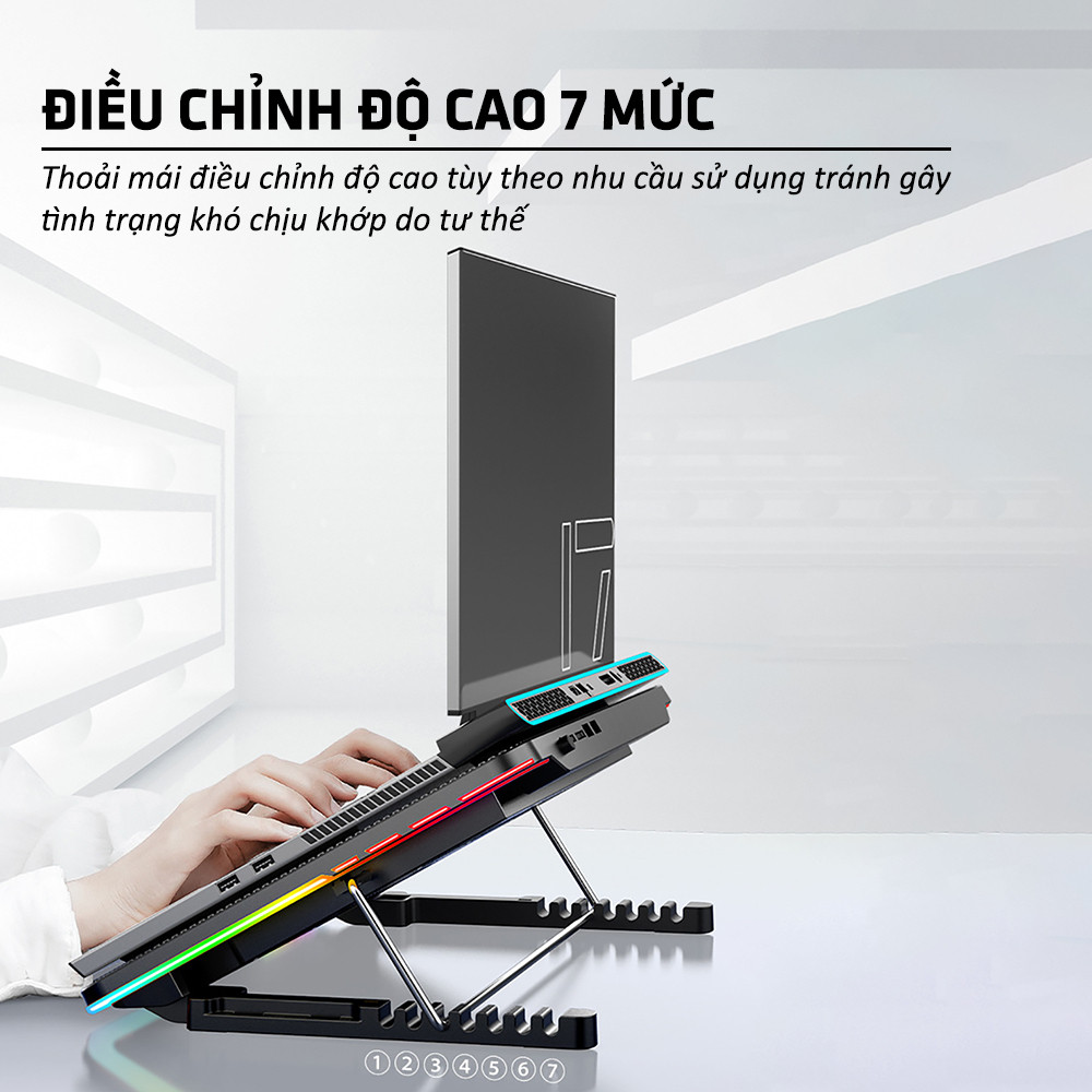7 mức tùy chỉnh độ cao giúp bạn tùy chỉnh linh hoạt để thao tác thoải mái hơn với laptop của mình