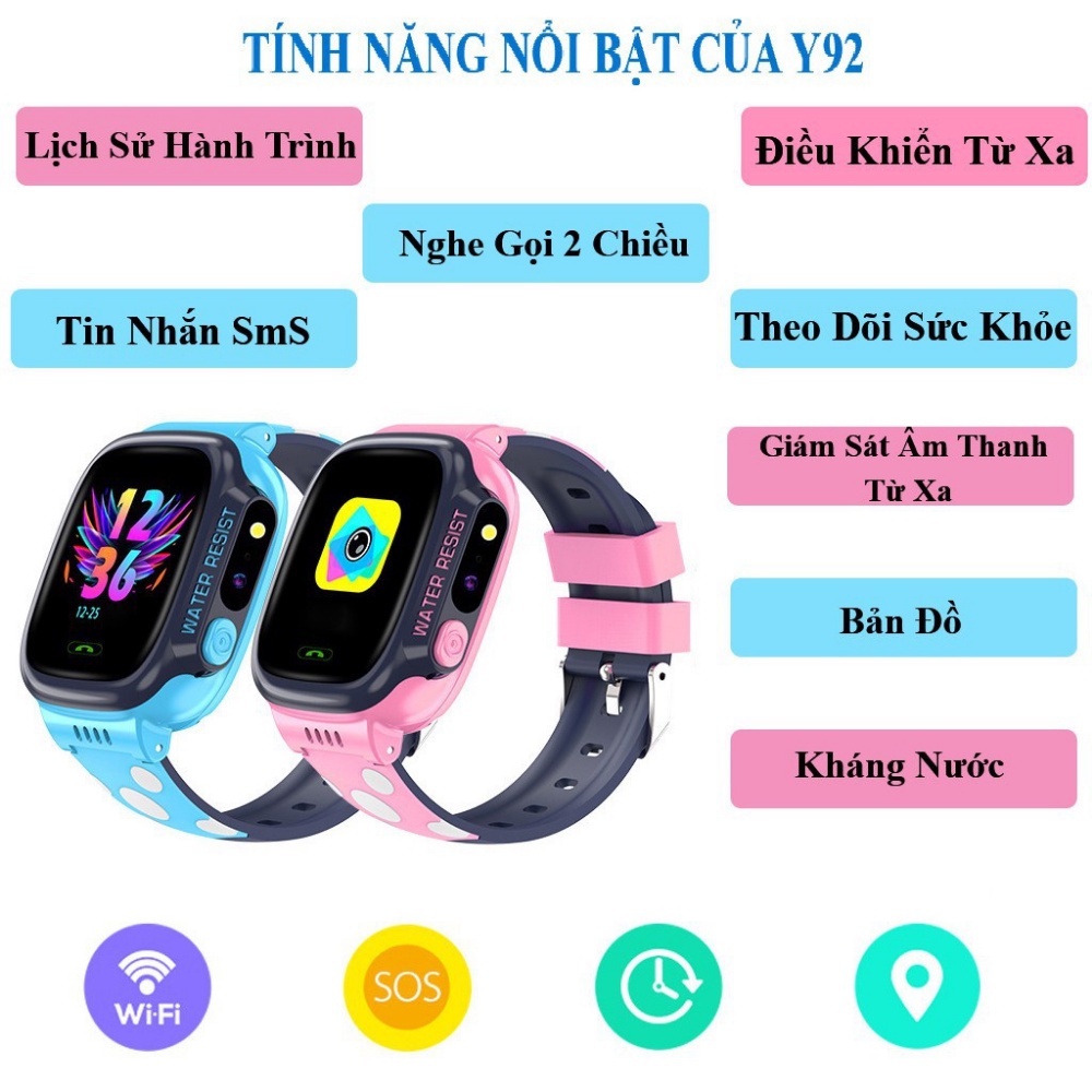 Đồng Hồ Định Vị Thông Minh Y92 Trẻ Em - Hỗ Trợ Tiếng Việt, Kháng Nước IP67, Định Vị LPS, 4G/WIFI