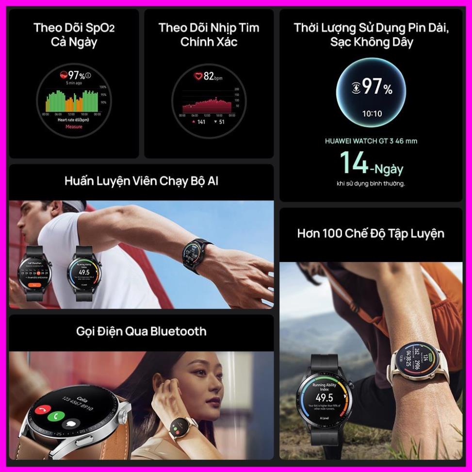 Đồng Hồ Thông Minh HUAWEI WATCH GT 3 46mm | Theo Dõi Spo2 Cả Ngày | Huấn Luyện Viên Chạy Bộ AI | Thời Lượng Sử Dụng Pin Dài | Hàng Phân Phối Chính Hãng