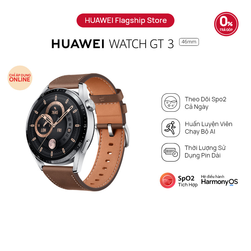 Đồng Hồ Thông Minh HUAWEI WATCH GT 3 46mm | Theo Dõi Spo2 Cả Ngày | Huấn Luyện Viên Chạy Bộ AI | Thời Lượng Sử Dụng Pin Dài | Hàng Phân Phối Chính Hãng