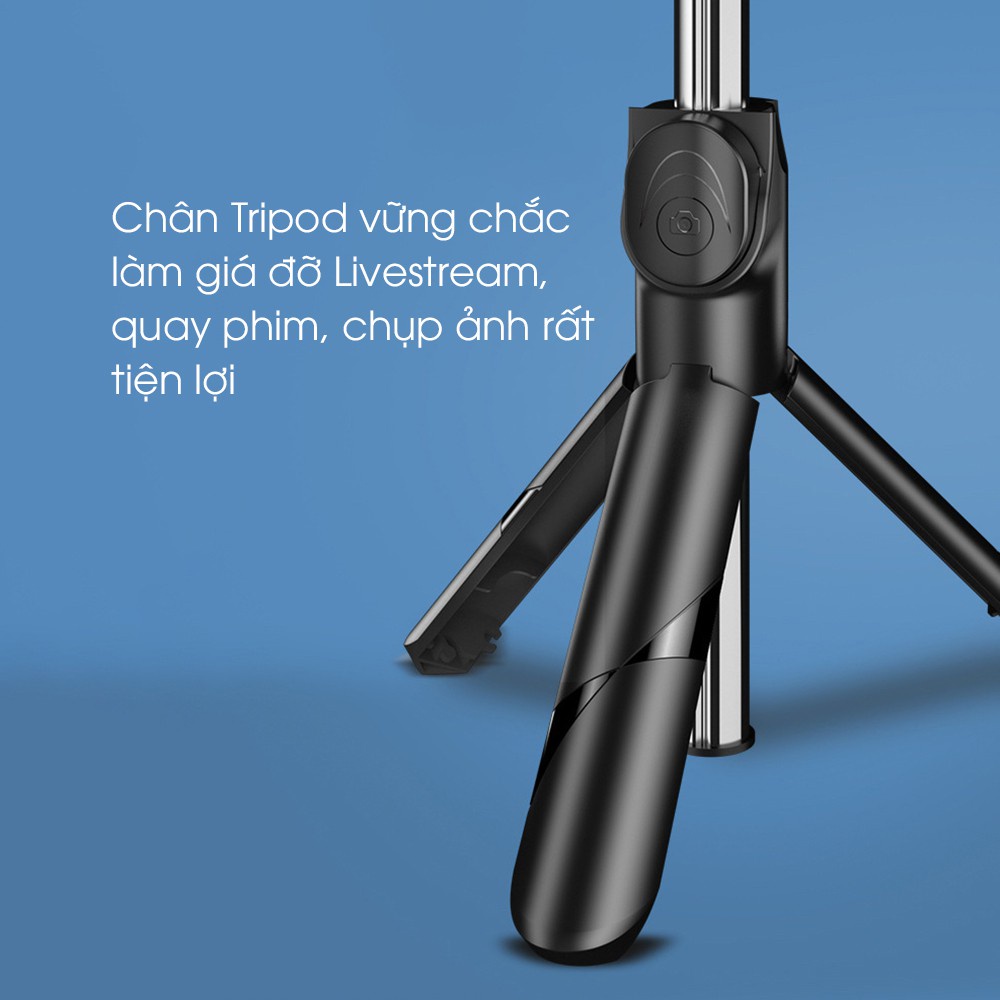 - Đa năng: gậy chụp ảnh tự sướng, giá đỡ điện thoại xem phim, live stream, Tripod chụp ảnh từ xa với nút bấm Bluetooth