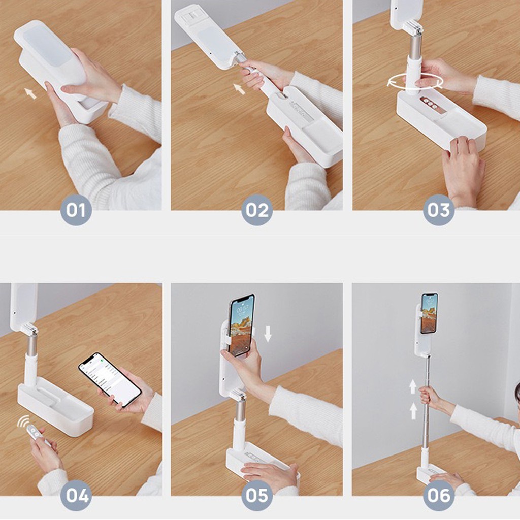 - Gậy livestream đa chức năng, gập mở gọn gàng trong 1 chiếc hộp, dễ dàng mang đi mọi nơi mà không phải mất công lắp ghép như các thiết bị khác