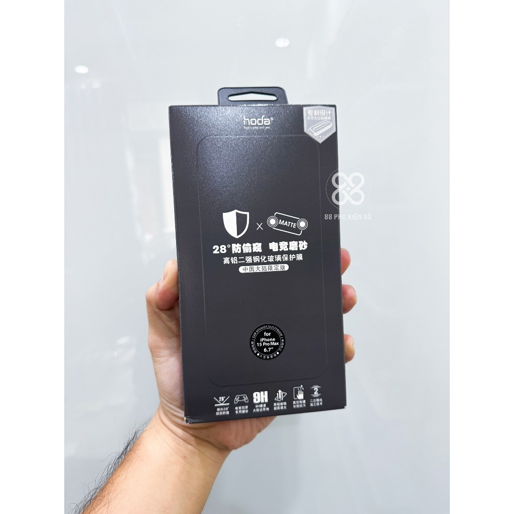 Hoda Anti-Peeping kính cường lực chống nhìn trộm số 1 thế giới nay tích hợp thêm nhám chống vân tay 2in1, quá khủng ! 👉 Dòng kính 2in1 vừa Nhám Mờ Chống Vân Tay và vừa Chống Nhìn Trộm. 👉 Độ dày 0.33mm. 👉 Full keo 100%, full màn hình, góc cạnh được xử lý cực đẹp y như màn trần. 👉 Công nghệ xử lý kính nhám hiện đại mang lại độ mịn cực cao. 👉 Tích hợp thêm chức năng chống nhìn trộm rất tiện lợi và riêng tư trong quá trình sử dụng. 👉 Độ trong cao nên các khu vục Cảm Biến Face ID & Camera hoạt động bình thường không bị ảnh hưởng. 👉 Viền đen được thiết kế và xử lý cực chuẩn, không ăn vào màn hình. 👉 Công nghệ xử lý nano công nghệ cao, giúp bề mặt kính siêu trơn láng, hạn chế bám vân tay, khó xước. 👉 Thiết kế dán bằng khuôn cực kì đơn giản, có thể tự dán dễ dàn tại nhà. 👉 Full box cao cấp tặng kèm bộ dụng cụ dán đầy đủ. 🔥 Sản phẩm dùng cho 12 đên 15 Series ------------------------------------------------------ 88 Phụ Kiện Số - Chuyên phụ kiện Apple chính hãng
