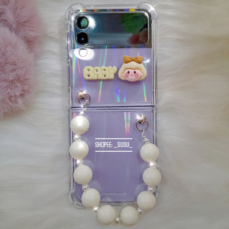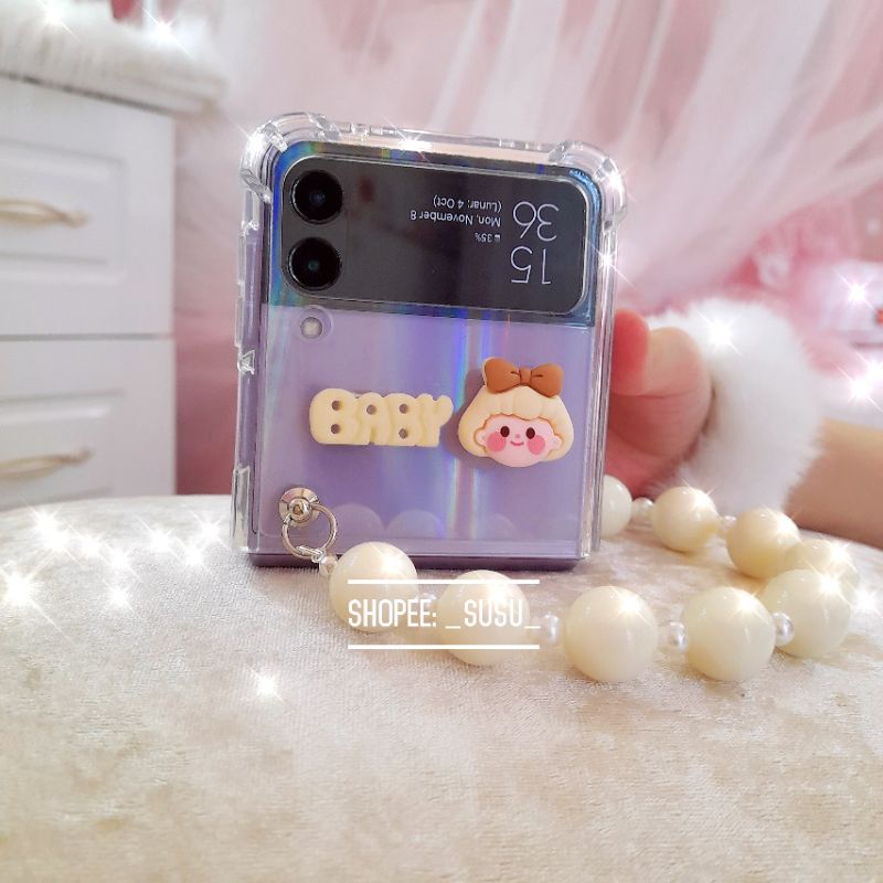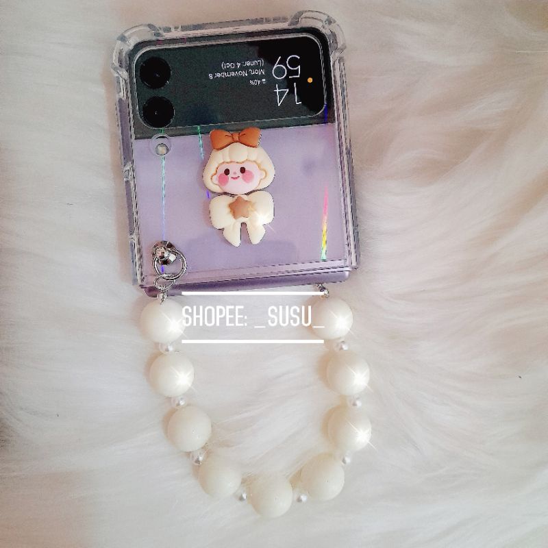[HÌNH THẬT CÓ SẴN] Ốp trong suốt Samsung Galaxy Z Flip 3 – ZFlip 3 – ZFlip3 – Flip3 5G charm siêu đáng yêu kèm dây hạt