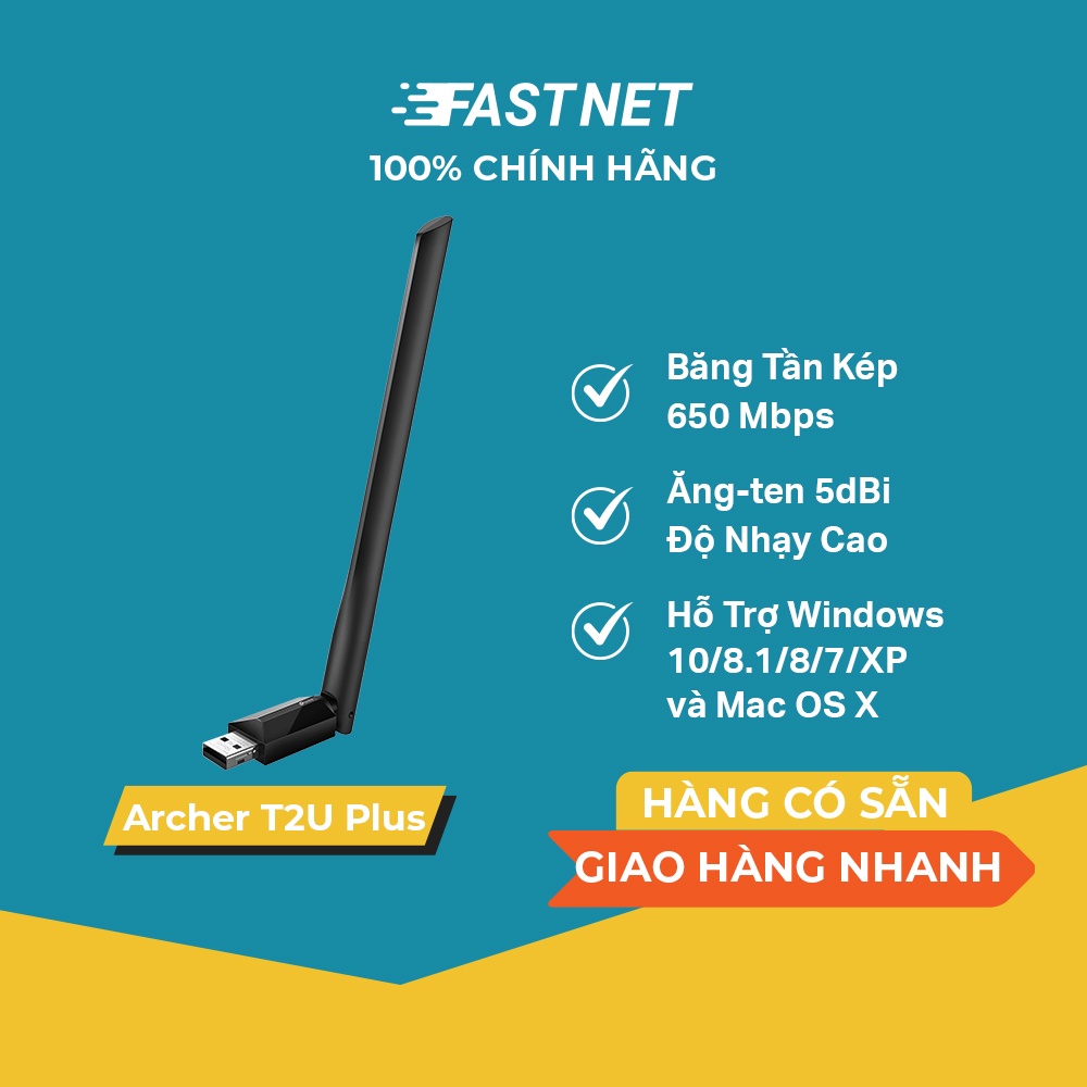 [Hỏa Tốc] Bộ Chuyển Đổi USB Wifi TP-Link Archer T2U Plus Băng Tần Kép Chuẩn AC600
