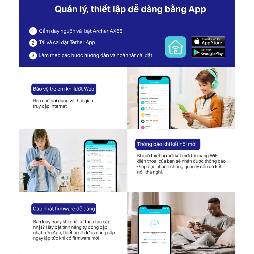 Cài đặt và quản lý dễ dàng với ứng dụng TP-Link Tether (Androi & iOS)