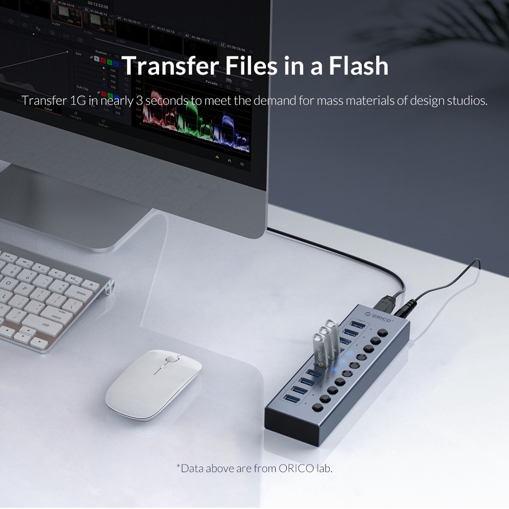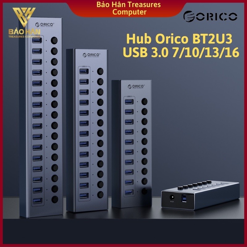 Hub Orico BT2U3 USB 3.0 7/10/13/16 Công Tắc Bật/Tắt Nguồn 12v Kèm Sạc Cho Máy Tính Bằng Nhôm – Hàng Chính Hãng