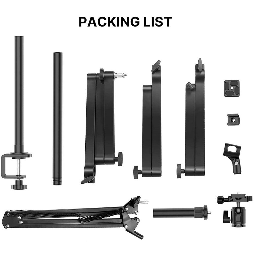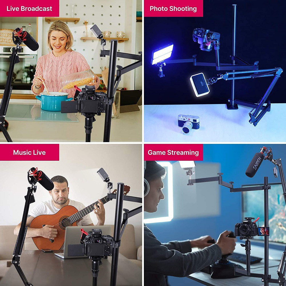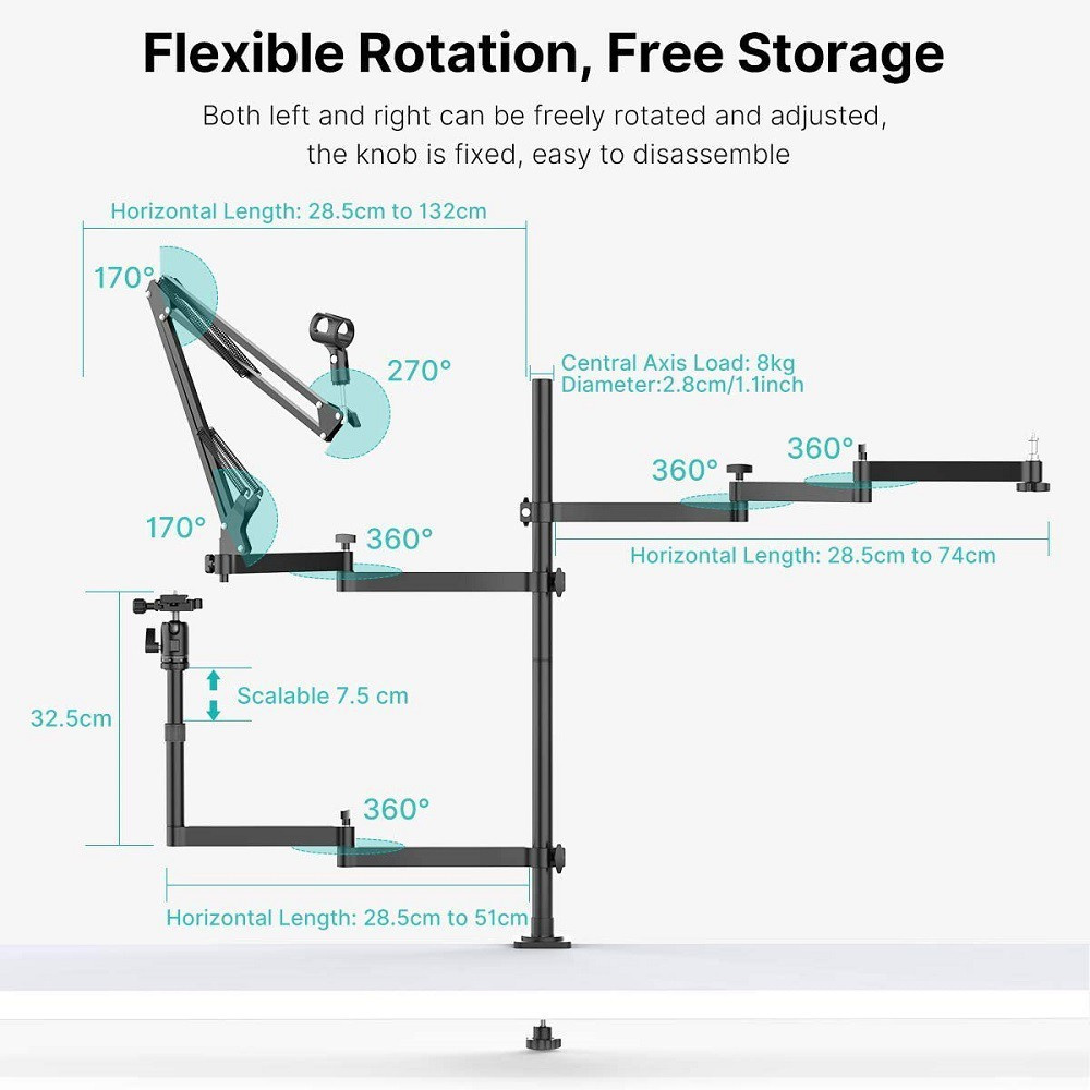 √ [Chân đế phát trực tiếp chuyên nghiệp] : Biến mặt bàn thành một phòng phát sóng trực tiếp chuyên nghiệp trong vài giây. Thiết kế ba cánh tay, máy ảnh, micro, đèn lấp đầy có thể được lắp đặt cùng lúc, và có thể thay đổi phòng trực tiếp trong vài giây.