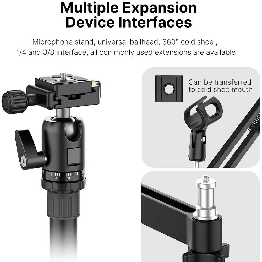 √ [Giao diện thiết bị mở rộng nhiều lần] : Giá đỡ điện thoại nhỏ, đầu bi đa năng, xoay 360°, giao diện 1/ 4 và 3/ 8, tất cả các phần mở rộng được sử dụng phổ biến đều có sẵn